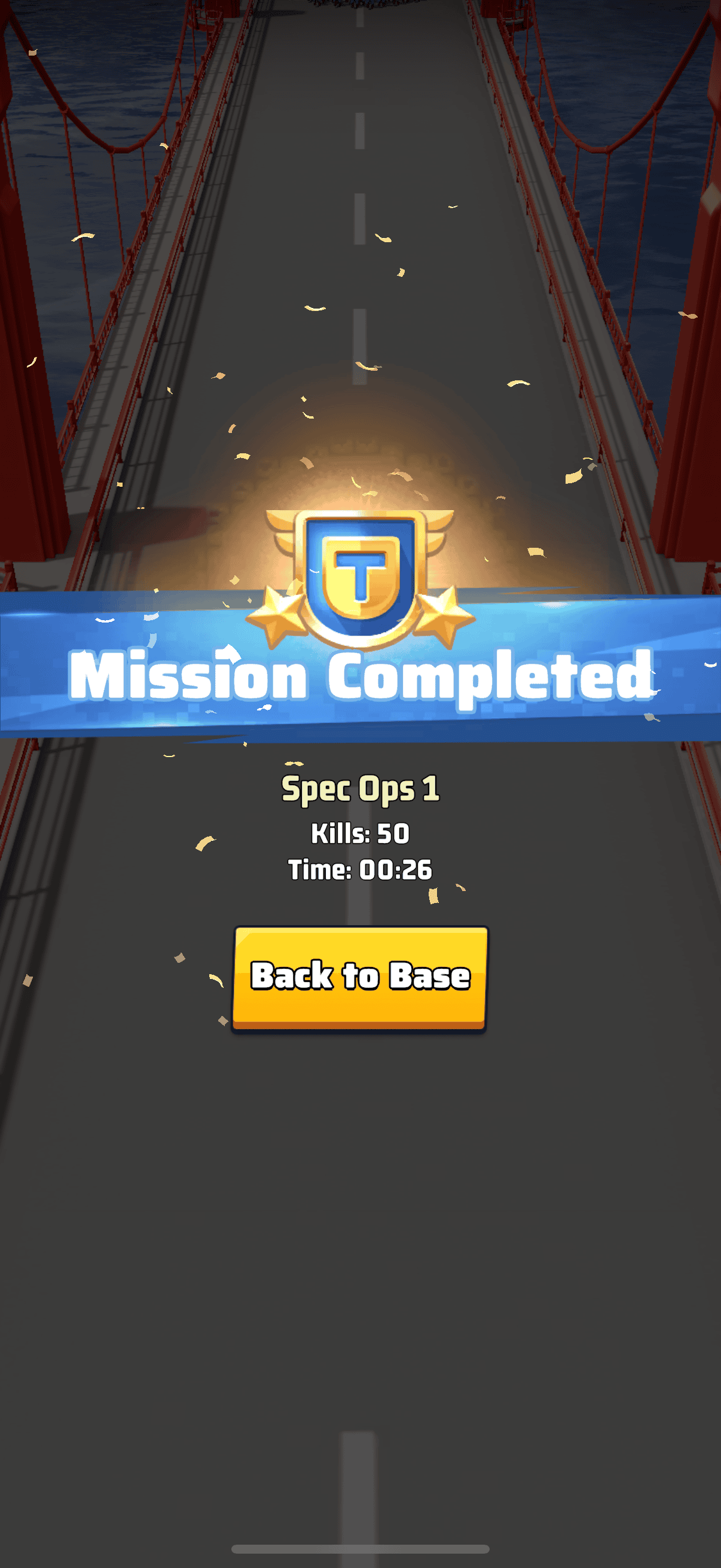 After each mission, you'll hit a results screen showing your kill count, survival time, and overall mission performance.